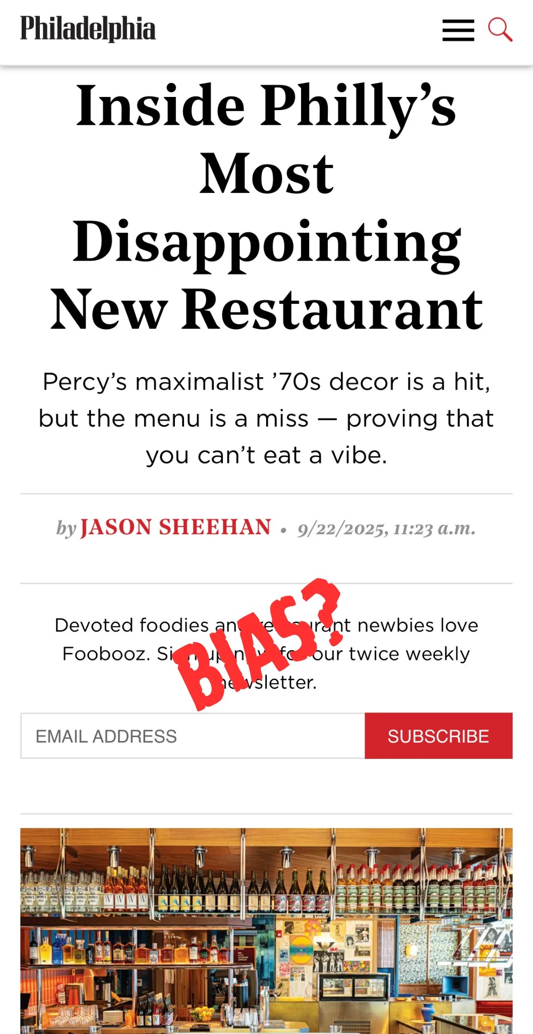 i’ve always maintained that the restaurants in philadelphia are among the best in the country, and I will fight anyone outside Cavanaughs who says any different. the michelin guide finally came to their senses and decided to take the acela down from new york to grace us with their presence. In both quality and diversity, we’ve got all the cuisine bases covered. But when it comes to food reporting in the city, we’ve got more problems than the eagles kickoff return team, septa’s financial viability, joe callahan’s publicist. philly Social media influencers are seduced with promises of free meals, money, and getting to play the front 9 at merion east with Steven starr. Their positive videos about new restaurant openings simply can’t be trusted. I recently read a philly mag restaurant review that was criticized for being unfairly harsh (which inspired this post). Even if the review itself wasn’t as bleak as the headline, it made me think twice about the critic’s objectivity.